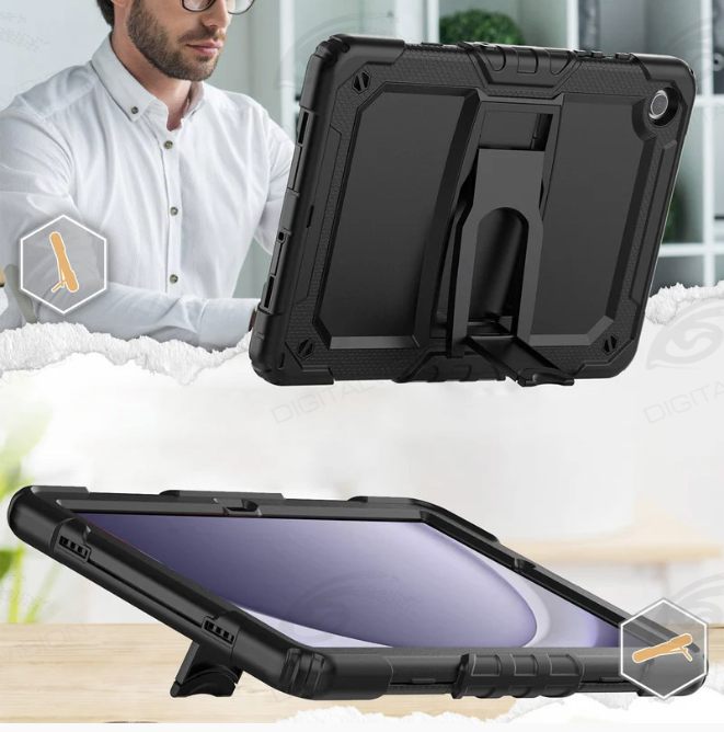 Izuzetno kvalitetna ojačana maska za Samsung Tab A11 Plus X230. Poseduje držač za ruku, otvor za olovku, kao i sve potrebne otvore.