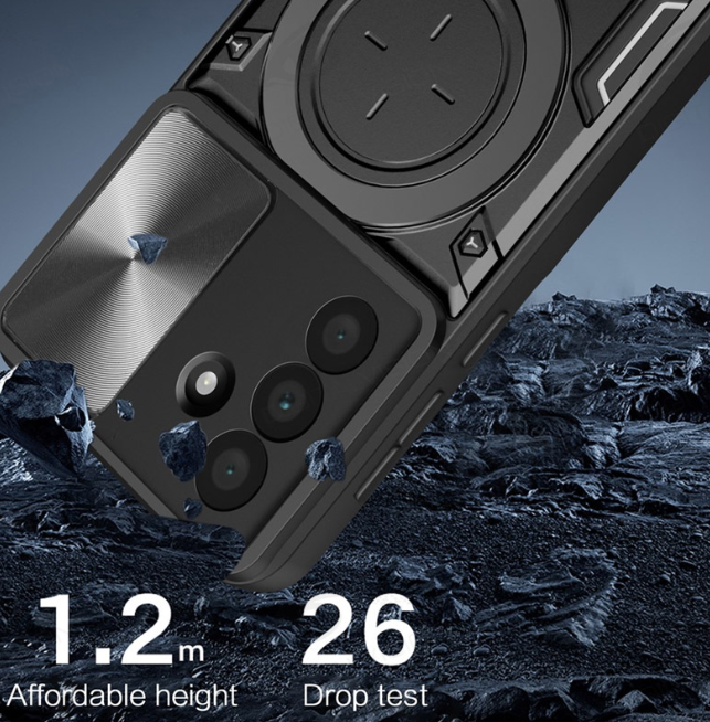 Sveobuhvatna zaštita od padova: Oklop od dva sloja. Kombinacija ojačanog PC (polikarbonat) oklopa i fleksibilnog silinskog okvira sa uglovima koji apsorbuju udarce, pruža trenutnu zaštitu (rebound efekat) prilikom padova, drastično smanjujući rizik od oštećenja.