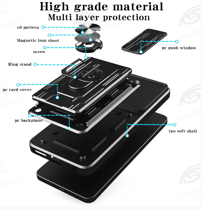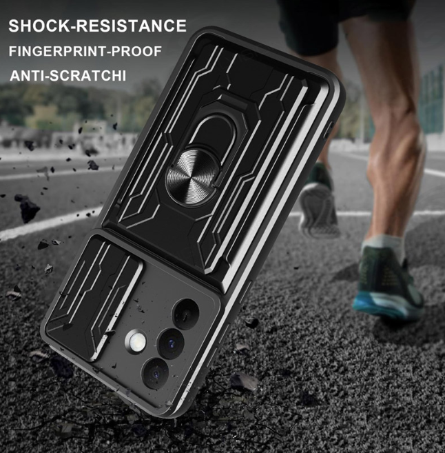 Klizna zaštita za kameru: Privatnost i sigurnost. Inovativni pomični poklopac (slider) štiti osetljiva sočiva kamere od ogrebotina kada je telefon u džepu ili na stolu, a ujedno pruža i dodatnu privatnost.